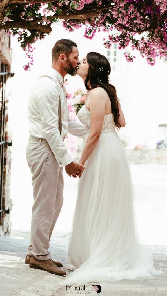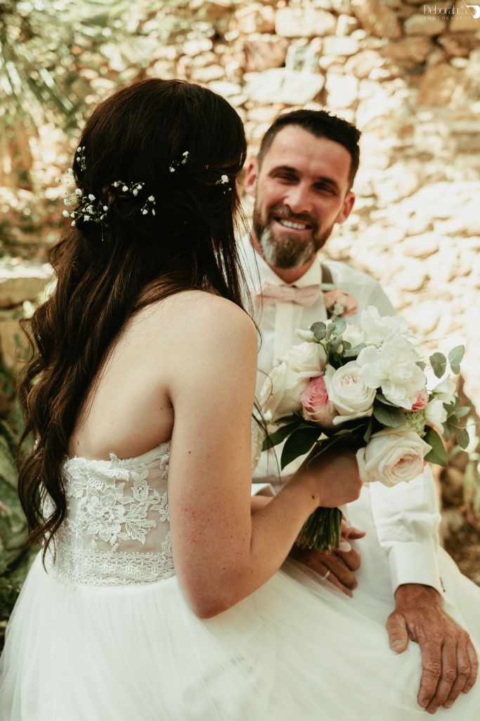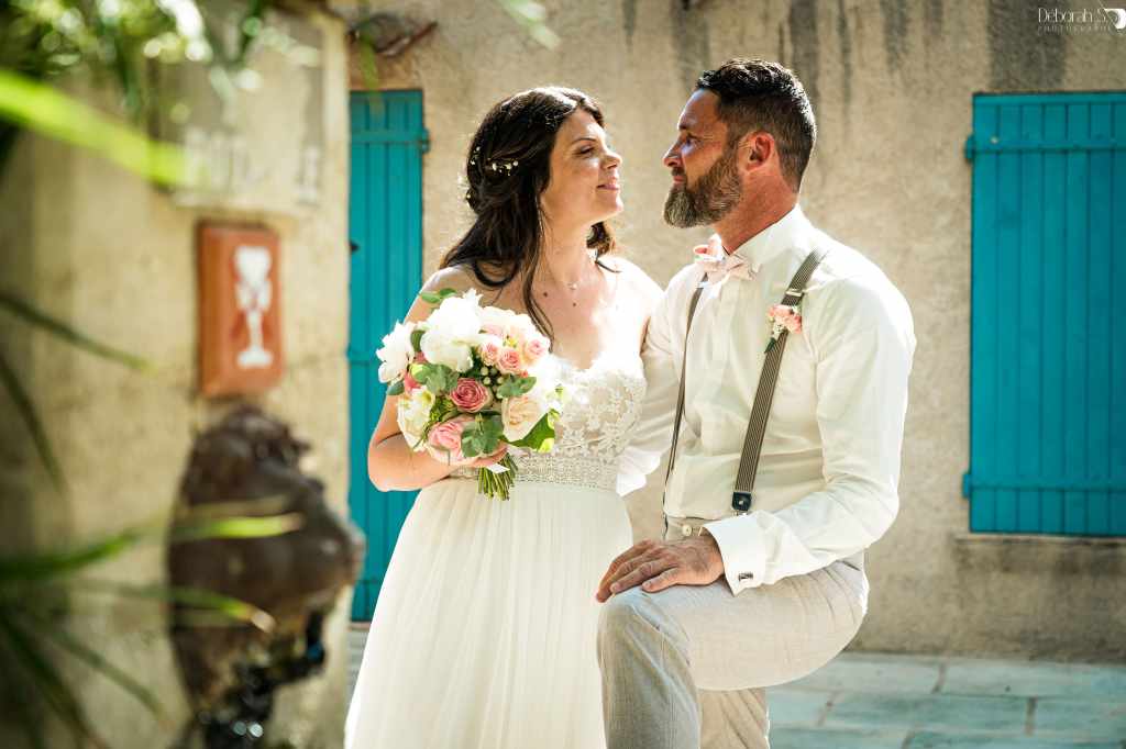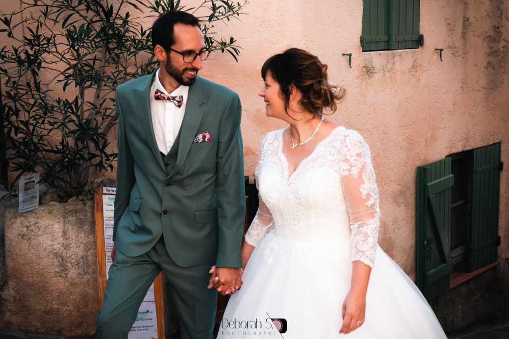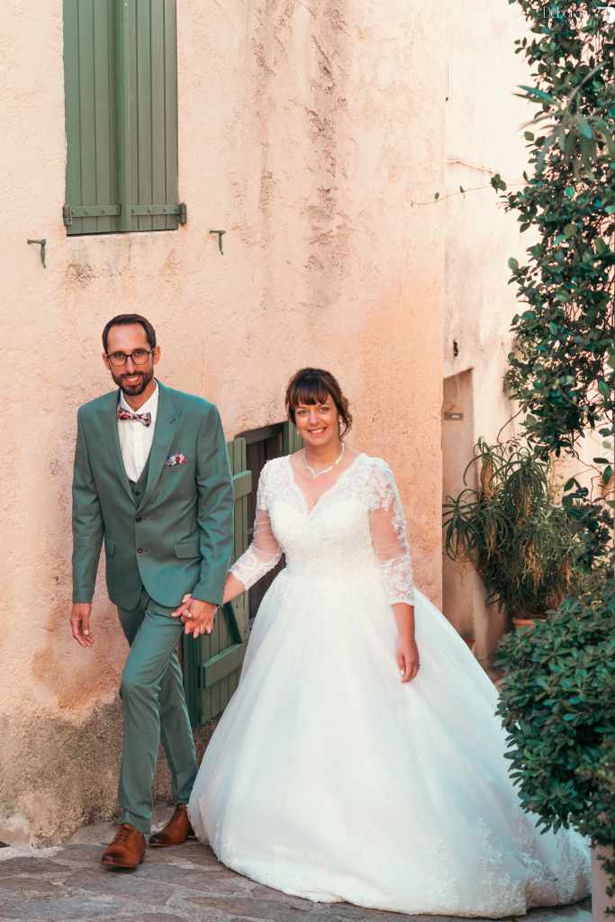J’ai retrouvé C& B dans les ruelles du vieux Cogolin, sur le lieu de leur premier bisou, quelques semaines avant le mariage. C’est tellement romantique! J’adore! Le futur marié était tellement stressé ce jour-là. Mais tout s’est envolé le jour j.